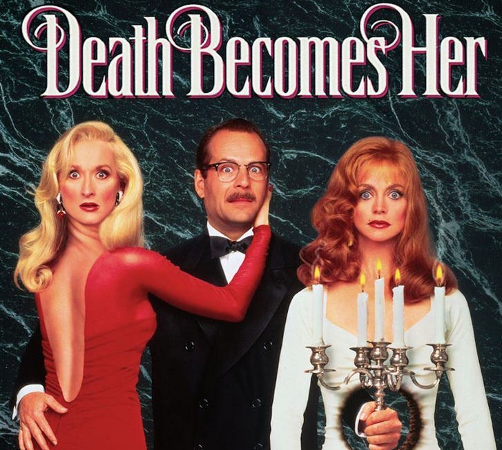 Frankenstein was a beautiful film (Literally. So aesthetically pleasing.), and Jacob Elordi deserves to win some kind of something for his role as the monster. But it was heavy. Even for a woeful woman like me, ha. So I chased it with the campy, palate-cleansing ’90s comedy, Death Becomes Her—a movie about two vain frenemies who take an anti-aging potion and fight each other to the death.