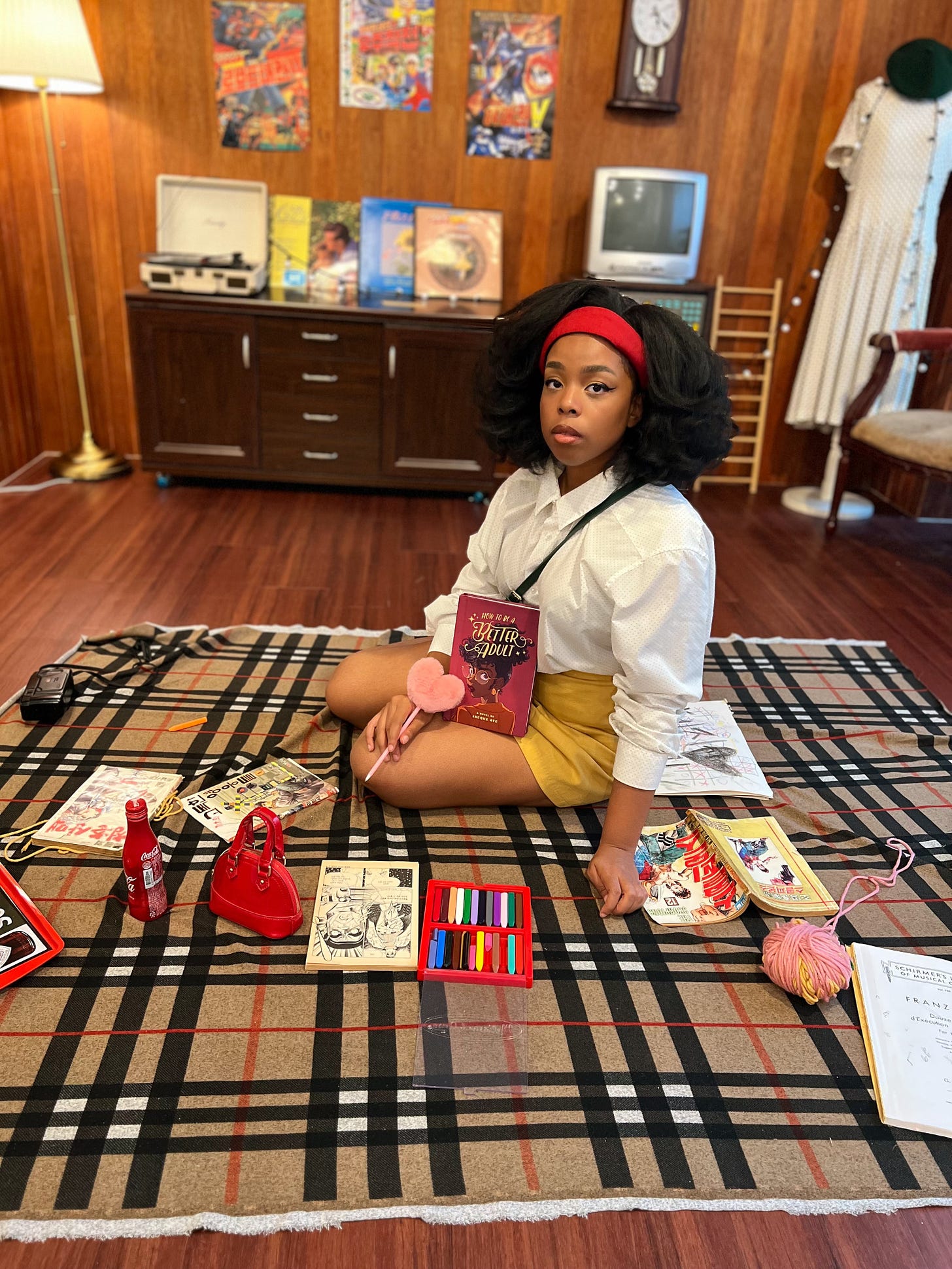 I took cutesy photos! I love Wes Anderson aesthetics. So, I booked a studio and had a little whimsical photoshoot. I always bring a copy of one of my novels so the shoot has a “purpose”, but really I just had the urge to be creative. And I had to get the energy out somehow.